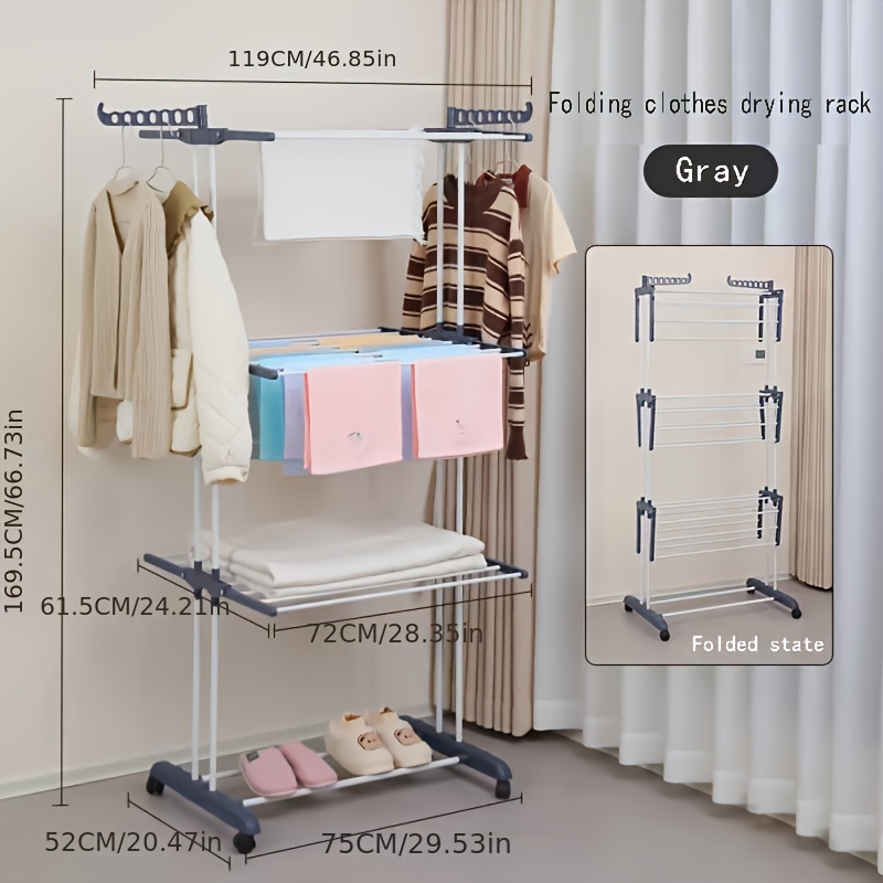 Étendoir à Linge Pliable à 4 Niveaux en Acier Inoxydable Transformez le séchage de vos vêtements avec cet étendoir ingénieux et robuste, conçu pour allier commodité, efficacité, et durabilité. Cet étendoir est le compagnon idéal pour vos besoins domestiques en intérieur ou extérieur.