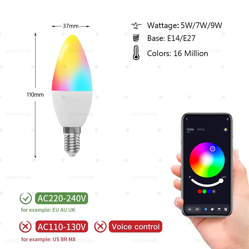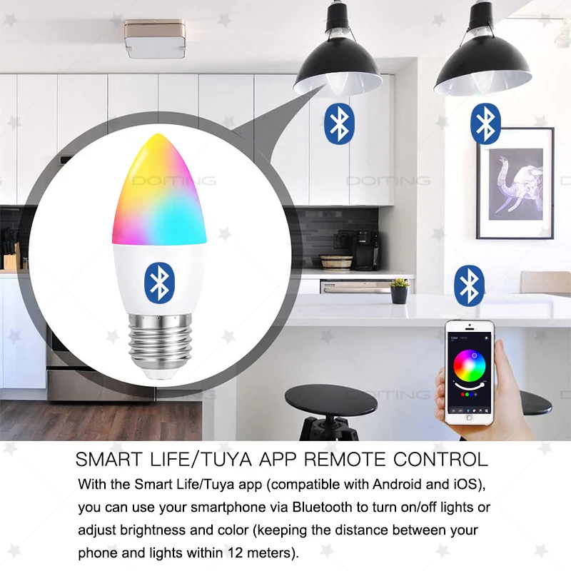 - 3 × Ampoules intelligentes en cristal E14 – 9W – RGBCW – Bluetooth