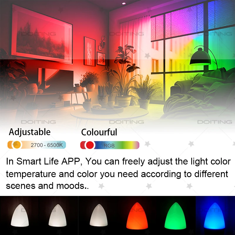 - Contrôle via Smart Life / Tuya : couleurs, luminosité, scénarios, groupes.
