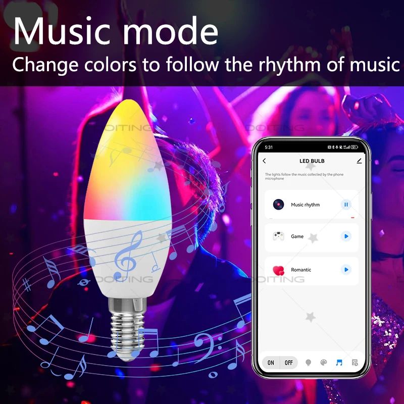 - Synchronisation musicale : la lumière réagit au rythme de votre musique.